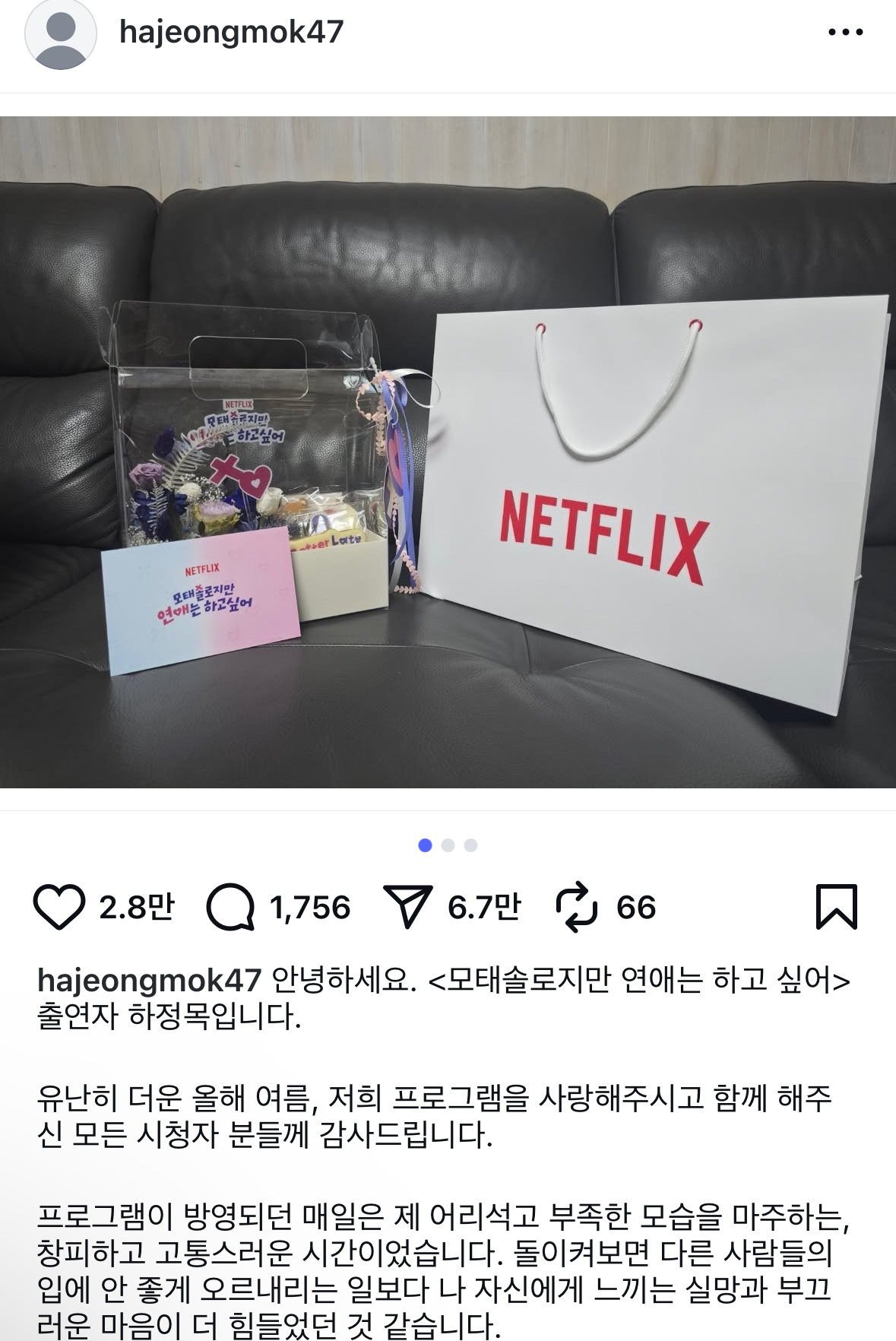 먼저 종영 후 모솔 탈출 소식이 전해져